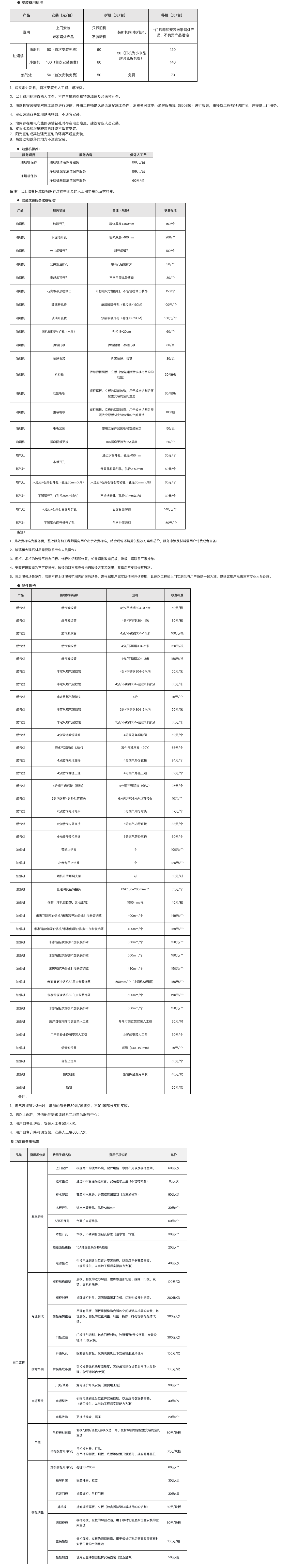 油烟机与燃气灶安装收费介绍: