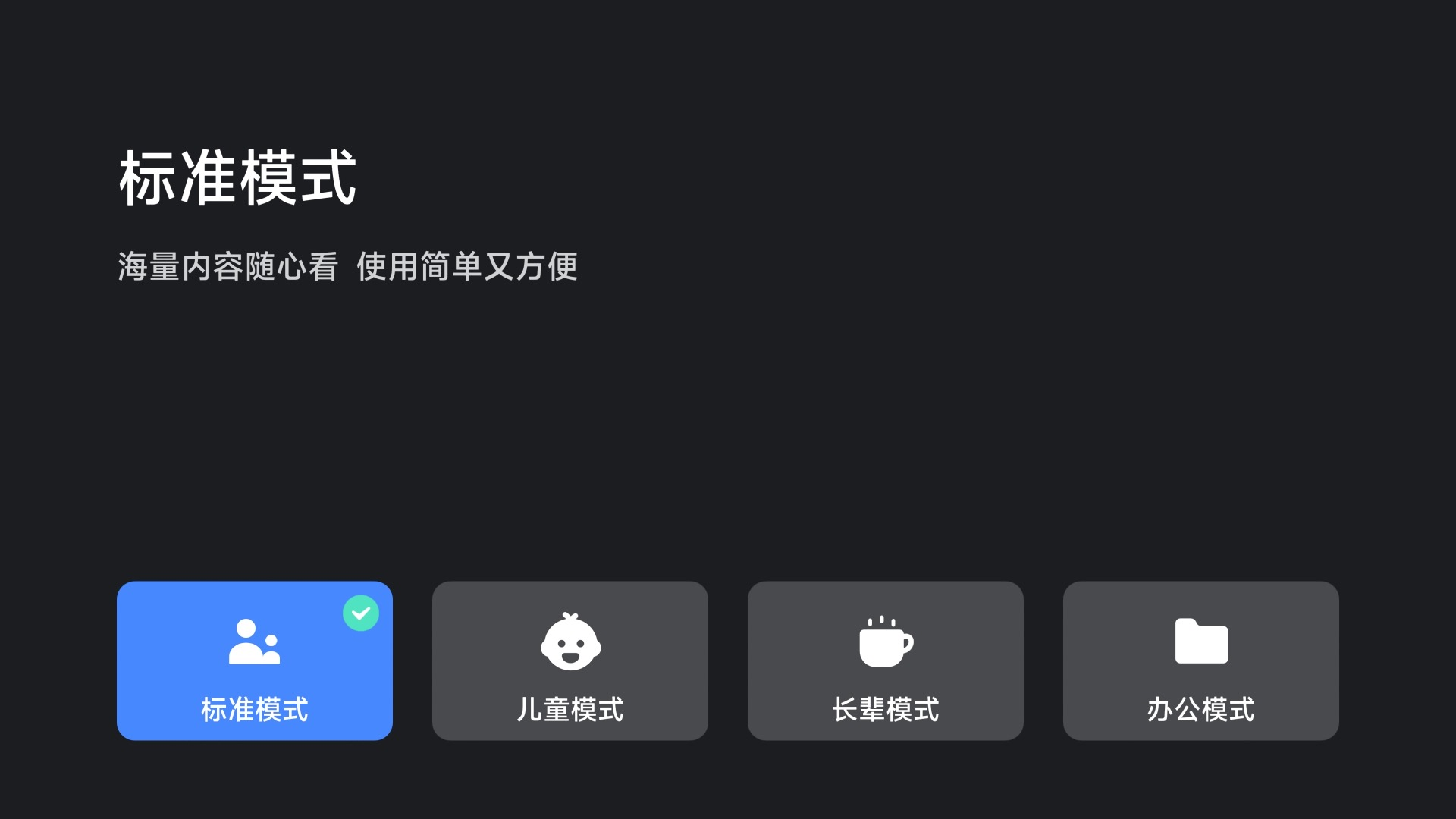 小米电视目前支持的模式有:标准模式、儿童模式、长辈模式、办公模式。